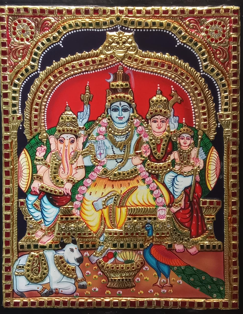 Beautiful Lord Siva Family Painting with Frame | 24-Carat Gold Foil Artwork